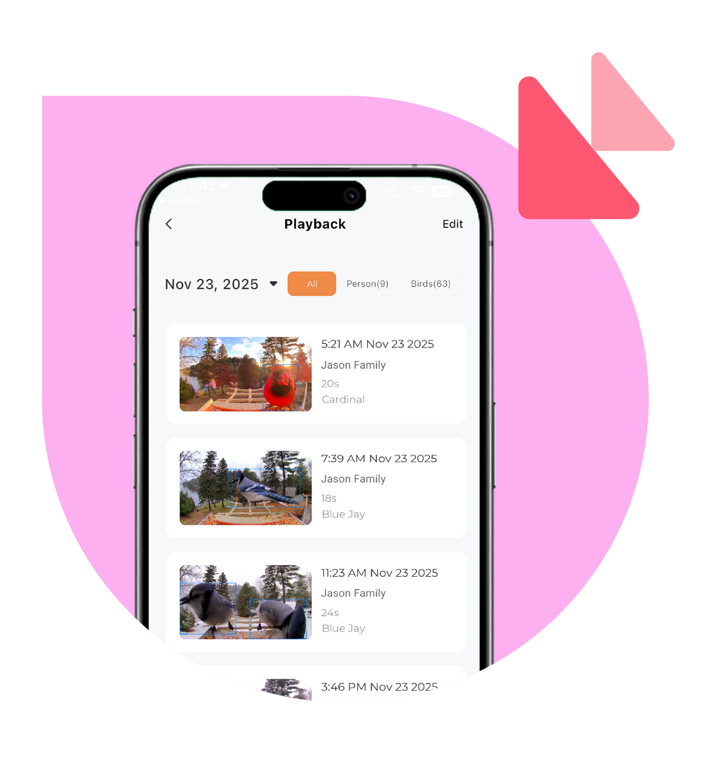 Receive instant alerts about bird activity. Get notified every time something exciting happens at your feeder.