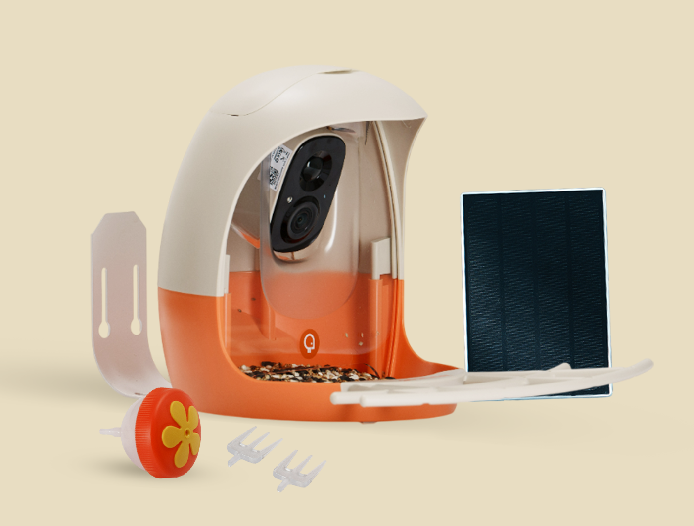3. Mount the feeder in your desired location (e.g. on tree trunk, pole, or bracket), add seed, test live stream and motion/visitor alerts.